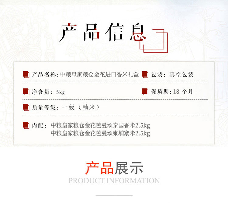 中粮皇家粮仓金花进口香米礼盒5kg