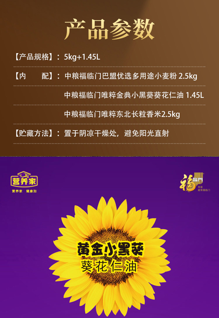 中粮福临门米面油礼盒5kg+1.45L