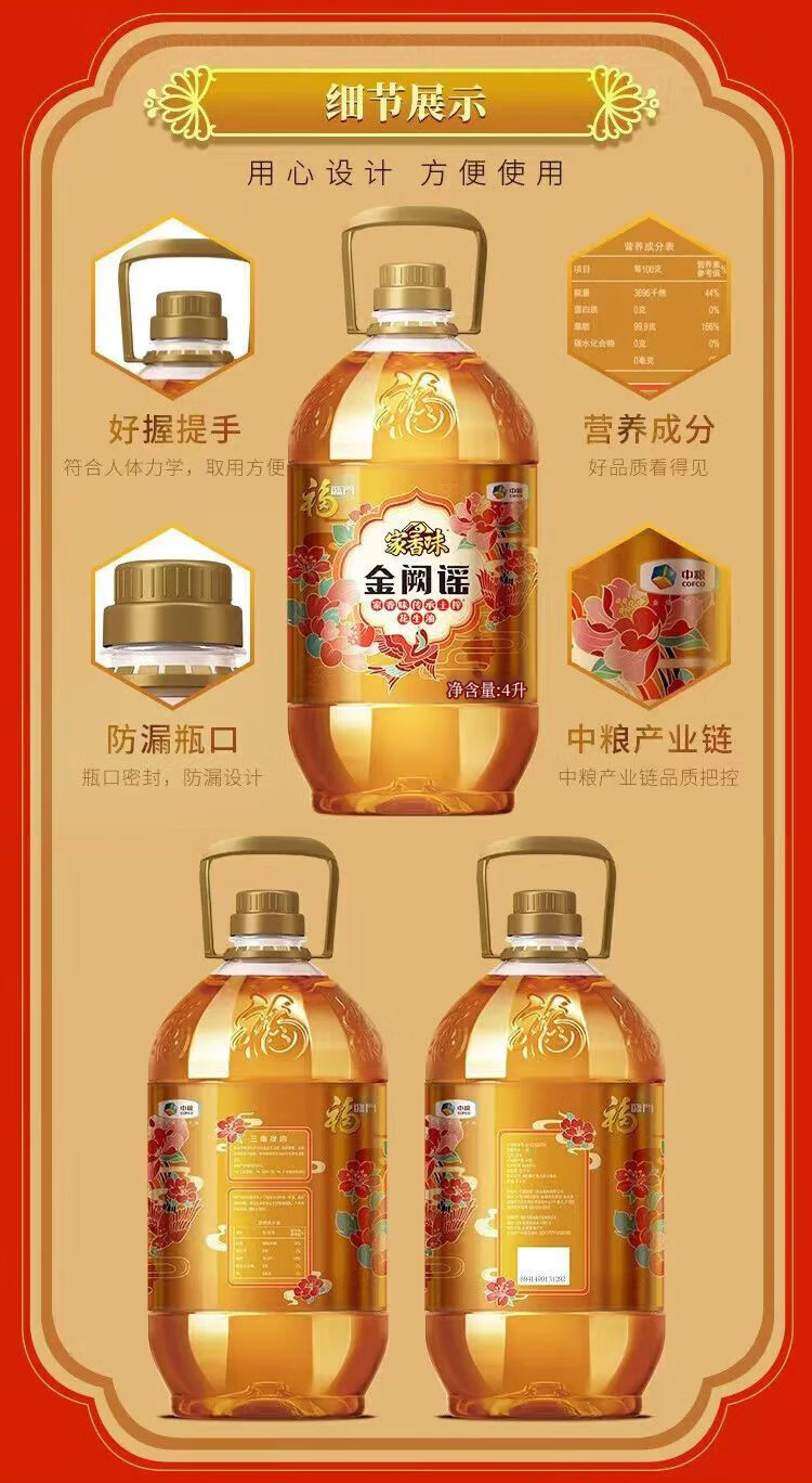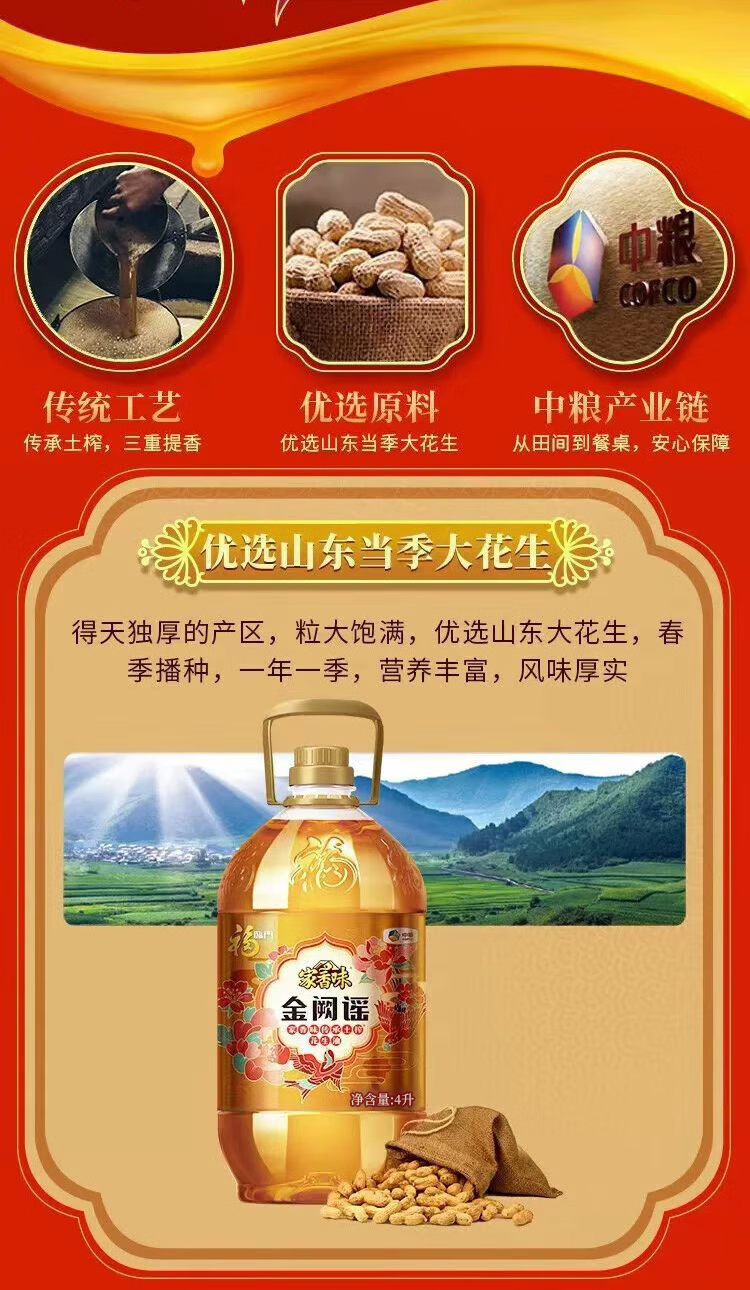 福临门家香味金阙谣传承土榨花生油4L