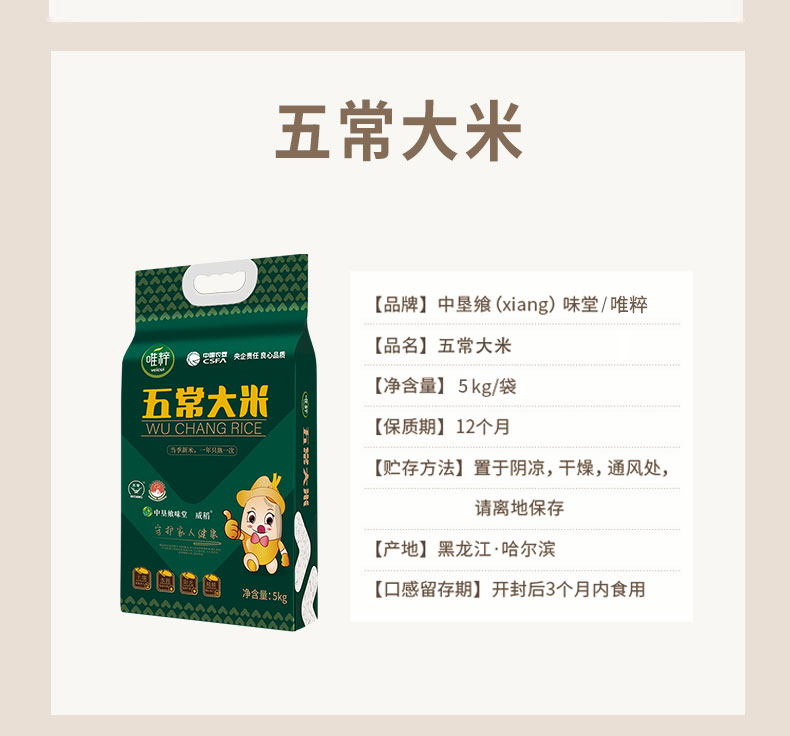 唯粹五常大米5kg(米种五优稻4号,俗称稻花香2号) 新